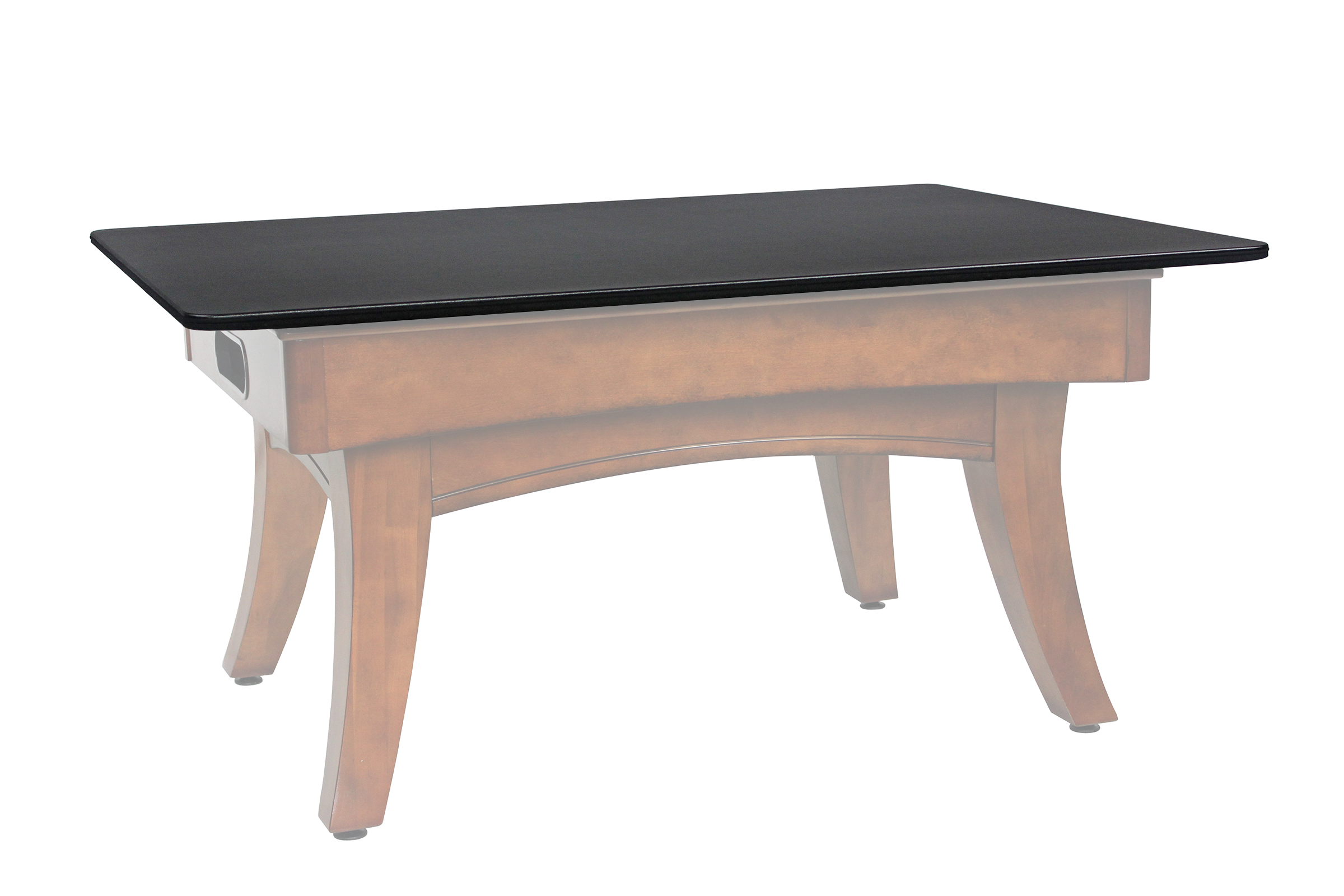 urn your bumper pool or foosball table into a 3 in 1 game table with the addition of the Legacy 2 in 1 Small Game Table Dining Top. This item will fit on the top of most bumper pool, foosball or other tables that have a flat surface. One side is a hard plastic surface perfect to use as a dining top or a banquet table for the food for game day.